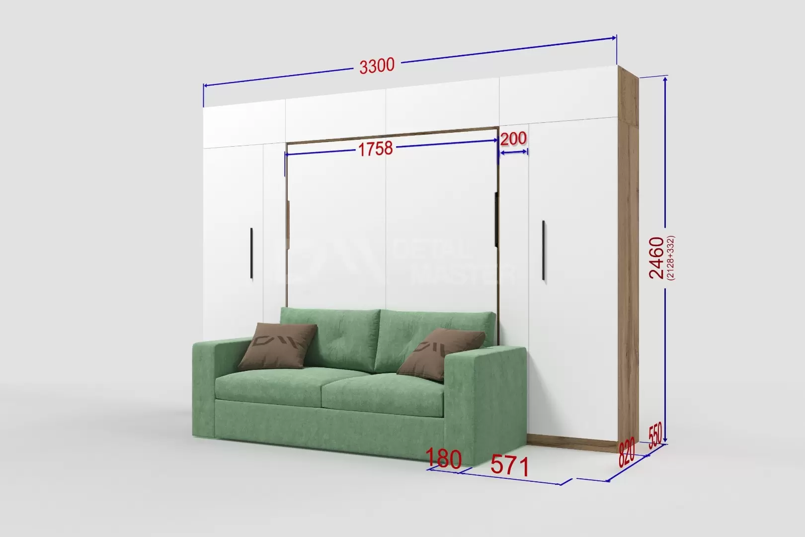Шкаф-кровать трансформер с диваном "Deluxe platinum Balance" работает на механизме раскладывания собственной разработки "Balance". Кровать раскладывается легким движением руки, превращаясь в полноценное спальное место. Просто потяните за ножку-маятник, которая самостоятельно фиксируется в нужное положение при опускании.